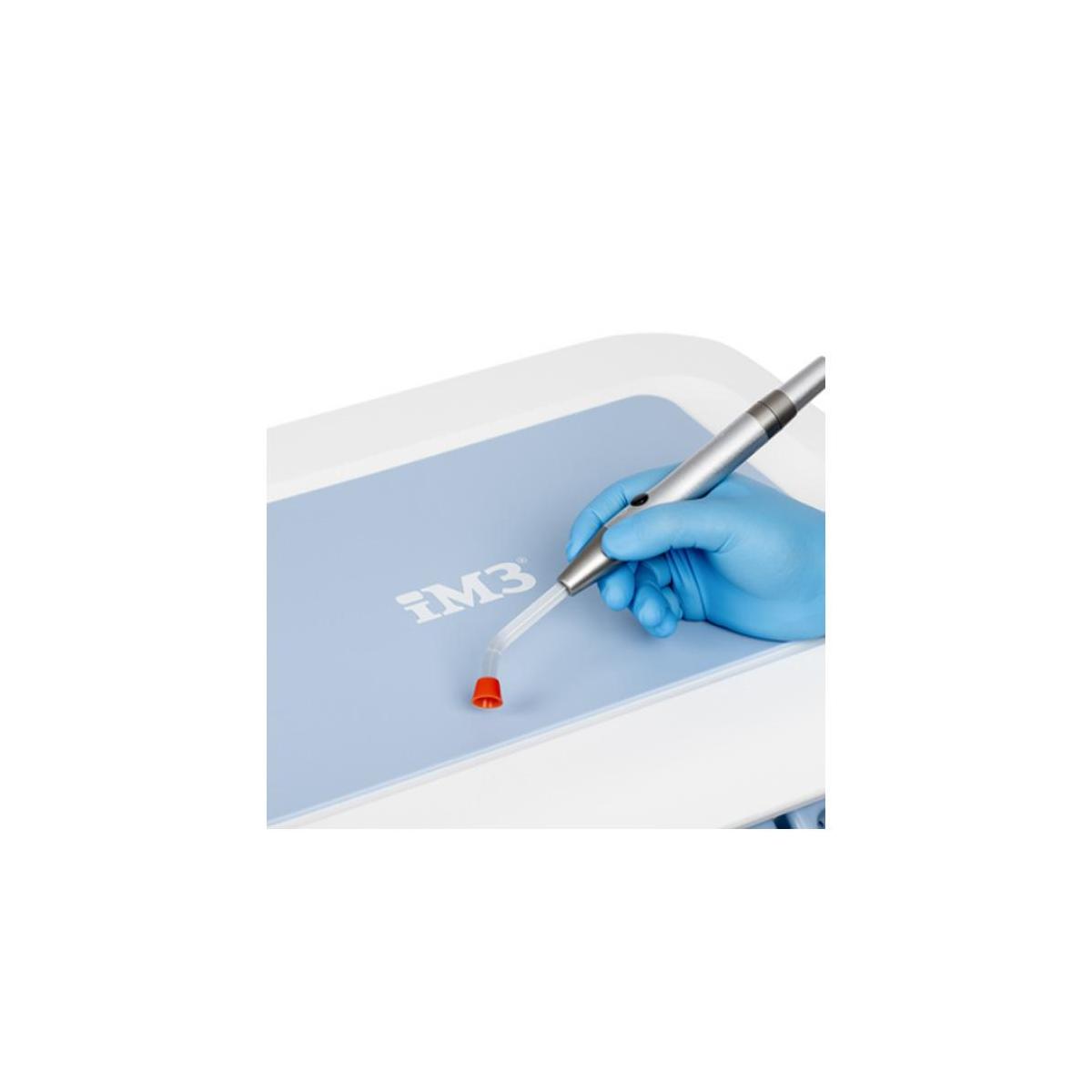Autoclavable Suction: Automatic suction with suction tips, handpiece, and smooth bore suction tubing that can be easily removed and autoclaved. Waste is collected in an easily accessible one-liter container with a replaceable filter. Thanks to iM3’s powerful compressor, suction and handpieces can run concurrently with no loss of performance.