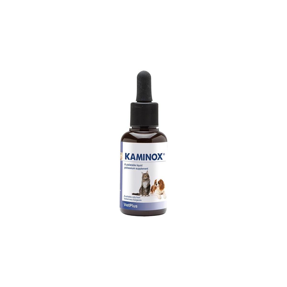 Pack Size: KAMINOX® is available as a liquid, in 60ml and 120ml bottles, with a measuring pipette provided, for dogs and cats.